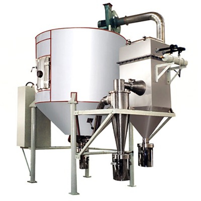2、霧化:噴霧干燥機(jī)的霧化系統(tǒng)必須確保霧滴大小分布均勻,這是至關(guān)重要的。因?yàn)檫@樣才能確保產(chǎn)品質(zhì)量的合格率。